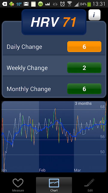 Day 3 :again no run again as feeling tired HRV has climbed up to a green 64 ..PP was giving a more accurate reading as to his I was feeling.